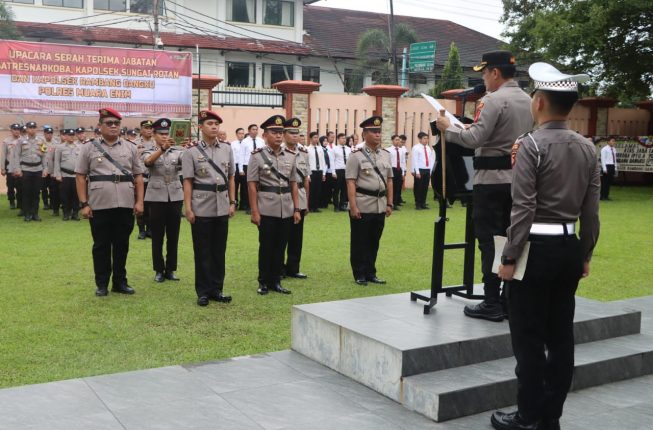 Dalam upacara tersebut, jabatan Kasatresnarkoba resmi diserahterimakan dari AKP Halim Kesumo, S.H., M.Si., kepada IPTU Achmad Yurico Aguslim, S.E., M.Si. Sementara itu, jabatan Kapolsek Sungai Rotan diserahterimakan dari AKP Indra Sakti Harahap kepada AKP Sumartono, S.E. Sedangkan jabatan Kapolsek Rambang Dangku diserahkan dari IPTU Achmad Yurico Aguslim kepada IPTU Edward Habibi, S.T., M.M.