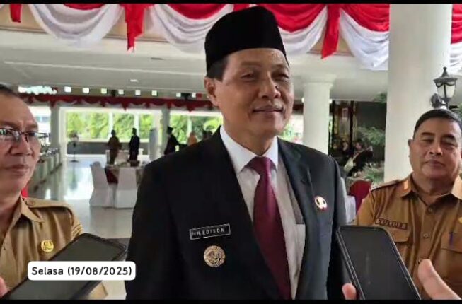 MUARAENIMONLINE.COM – Pegawai Pemerintah dengan Perjanjian Kerja (PPPK) formasi Tahun 2024 Kabupaten Muara Enim segera dilantik pada Rabu 27 Agustus 2025 nanti. Demikian diungkapkan Bupati Muara Enim H Edison, SH, M.Hum, didampingi Sekda Muara Enim Ir Yulius,M.Si, serta Kepala BKPSDM Harson Sunardi, M.Si, usai melantik beberapa pejabat eselon II di Balai Agung Serasan Sekundang (BASS) Rumah Dinas (Rumdin) Bupati Muara Enim, pada Selasa (19/08/2025) pukul 10:00 WIb, dengan lampiran keputusan Bupati Muara Enim Nomor :800.1.3.3/13/BPSDM-2/2025..