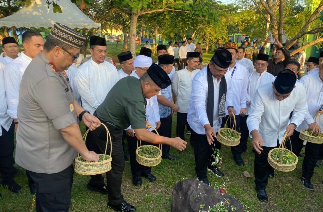 LHOKSEUMAWE, MUARAENIMONLINE.COM  – Kapolres Lhokseumawe, AKBP Henki Ismanto bersama unsur Muspida meninjau proses penyortiran dan pelipatan surat suara Pemilu 2024 di gudang logistik KIP Lhokseumawe, Senin (8/1/2024).