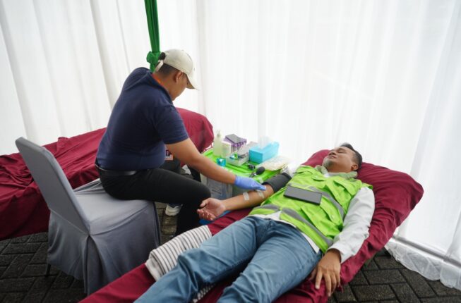 Selain upacara, Panitia Bulan K3 Nasional juga melaksanakan kegiatan donor darah sebagai bentuk nyata kepedulian Perusahaan terhadap keselamatan dan kesehatan kerja sekaligus kontribusi sosial dalam mendukung pemenuhan kebutuhan darah bagi masyarakat.