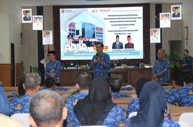MUARAENIMONLINE COM – Untuk menumbuhkan rasa kebersamaan dalam internal organisasi serta meningkatkan tanggung jawab akan tugas dan fungsi, Bupati Muara Enim, H.Edison, S.H., M.Hum., menggelar paparan rencana kerja dan inovasi yang diikuti seluruh pejabat eselon III Pemerintah Kabupaten Muara Enim di Ruang Rapat Pangripta Nusantara, di Kantor Bappeda Muara Enim, Kamis (17/04).