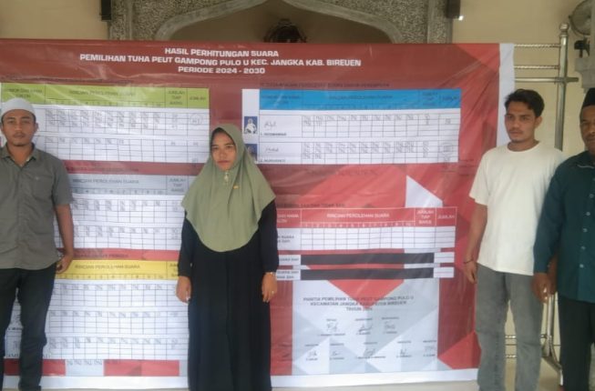 Pemilihan disaksikan aparatur pemerintahan Gampong yang ikut melakukan pemilihan untuk menyukseskan acara pemilihan Tuha Peut yang juga dihadiri Camat Jangka, Alfian, S.Sos, dan Tripika.