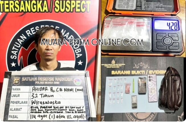 MUARAENIMONLINE.COM – PElaku pengedar narkoba jenis sabu berhasil diringkus Polres Muara Enim disebuah rumah yang beralamatkan di Desa Dalam Kecamatan Belimbing Kabupaten Muara Enim, pada Senin (01/12/2025) lalu, sekitar pukul 04:00 WIB.