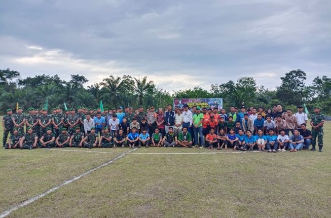MUARAENIMONLINE.COM – Pembukaan Turnament sepak bola Danyon Cup dalam rangka peringatan HUT TNI yang ke 79 tahun yang berlangsung di lapangan Sai Sohar Yonif 141/AYJP Desa Karang Raja Kecamatan Muara Enim Kabupaten Muara Enim Sumsel, Jumat (13/09/2024).