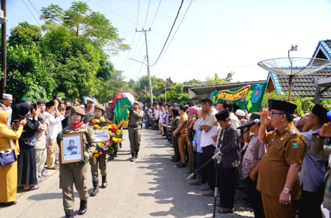 Pj. Bupati Muara Enim, Dr. H. Ahmad Rizali, M.A., saat memimpin upacara pemakaman sekaligus melepas jenazah di rumah duka, Jalan R.A. Kartini, Kec. Muara Enim, Selasa (16/07) mendoakan sosok istri dari Brigpol. Dwiky Rido Akbar Anggota Polres Muara Enim yang bertugas sebagai Pengawal Bupati Muara Enim tersebut meninggal dalam keadaan syahid dan Husnul khatimah.