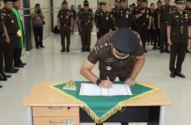Sementara kegiatan tersebut dihadiri oleh Jaksa Fungsional dan Staff Tata Usaha Kejaksaan Negeri (Kejari) Muara Enim. Acara dibuka dengan pembacaan Surat Keputusan Jaksa Agung Republik Indonesia dan Surat Perintah Kepala Kejaksaan Negeri Muara Enim yang selanjutnya penyampaian kata-kata pelantikan dan pengambilan sumpah jabatan oleh Kepala Kejaksaan Negeri Muara Enim, serta penandatanganan Berita Acara pengambilan sumpah jabatan dan berita acara serah terima jabatan dari Anjasra Karya S.H., M.H Kepada Arsitha Agustian, S.H.M.H yang disaksikan oleh Kepala Kejaksaan Negeri (Kajari) Muara Enim Rudi Iskandar, S.H., M.H, beserta Para Kasi dan Kasubagbin Kejaksaan Negeri Muara Enim yang kesemua rangkaian kegiatan berjalan dengan aman dan lancar.(Jj.red).