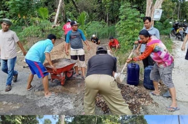 MUARAENIMONLINE.COM – Karang taruna Andar Dise dan masyarakat desa muara gula lama Kabupaten Muara Enim melakukan kegiatan gotong royong perbaikan jalan menuju desa Minggu (16/6).