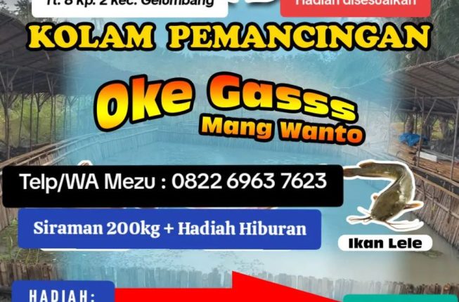 MUARAENIMONLINE.COM – Kabar gembira bagi yang hobi mancing khususnya bagi warga Gelumbang Raya Kabupaten Muara Enim dan sekitarnya, bahwa Kolam Pemancingan OKE GASSS MANG WANTO yang berlokasi di Gang Usai Dusun II Desa Karang Endah Kecamatan Gelumbang Kabupaten Muara Enim, akan mengadakan lomba mancing Ikan Lele, yang akan diselenggarakan pada hari Minggu 16 Februari 2025 Pukul 13:00 s/d Pukul 17:30 WIB.