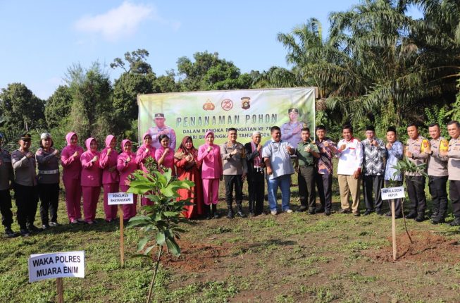 Kapolres Muara Enim didampingi Ketua Bhayangkari Cabang Muara Enim, para Pejabat Utama Polres Muara Enim, serta para undangan, melakukan penanaman pohon secara simbolis, dilanjutkan penebaran benih ikan nila dan patin di kolam, serta perawatan sayuran hidroponik yang nantinya akan diserahkan sebagai bantuan sosial kepada masyarakat guna memperkuat ketahanan pangan lokal juga penyerahan paket sembako.