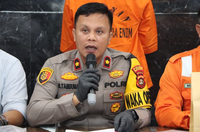 Waka Polres Muara Enim, Kompol Roy Arpian, SP, SIK, yang mewakili Kapolres Muara Enim AKBP Jhoni Eka Putra, SH, SIK, MSi, memimpin konferensi pers tersebut. Didampingi oleh Kasat Reskrim AKP Darmanson, SH, MH, dan Kasi Humas AKP RTM Situmorang, memaparkan kronologi kasus ini kepada media.