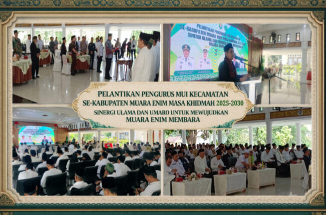 MUARAENIMONLINE.COM – Majelis Ulama Indonesia (MUI) Kabupaten Muara Enim resmi melantik Pengurus MUI Kecamatan se-Kabupaten Muara Enim periode 2025–2030, Selasa (4/2/2026). Kegiatan pelantikan berlangsung khidmat di Balai Agung Serasan Sekundang, dengan mengusung tema “Sinergi Ulama dan Umaro untuk Mewujudkan Muara Enim Membara”