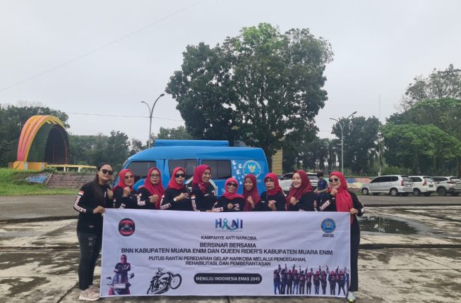 MUARAENIMONLINE.COM – Komunitas motor Queen Riders Muara Enim kembali menunjukkan eksistensinya tidak hanya sebagai komunitas pecinta otomotif, tetapi juga sebagai agen perubahan sosial. Pada Sabtu pagi (21/6), Queen Riders hadir dalam undangan Badan Narkotika Nasional (BNN) Kabupaten Muara Enim untuk ikut serta dalam rangkaian kegiatan Hari Anti Narkotika Internasional (HANI) melalui momentum Car Free Day di GOR Pancasila.