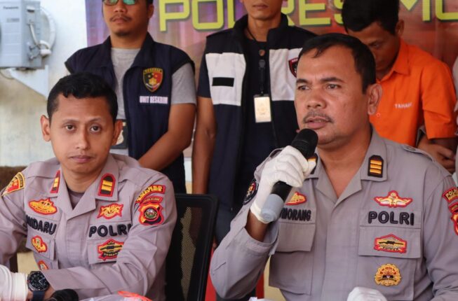 Dalam konferensi pers yang digelar di halaman Mapolsek Lawang Kidul pada Jumat (5/9/2025) kemarin, Kasi Humas Polres Muara Enim, AKP RTM Situmorang mewakili Kapolres Muara Enim AKBP Jhoni Eka Putra, SH, SIK, MSi. Hadir pula Kapolsek Lawang Kidul IPTU Andaru Galuh Indratno, S.Tr.K, Waka Polsek Lawang Kidul Ipda Edi Susanto, Kanit Reskrim Ipda Noky Juliawan, SH serta jajaran personel Polsek Lawang Kidul.