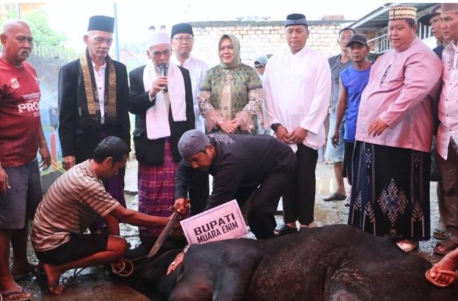 Berdasarkan data dari Bagian Kesejahteraan Rakyat (Kesra) Setda Kabupaten Muara Enim, tahun ini Pemkab. Muara Enim menyalurkan hewan kurban sebanyak 13 ekor sapi disebar di masjid-masjid, pondok pesantren sampai Kecamatan dan 1 ekor sapi dengan berat hampir satu ton dari Bapak Presiden Prabowo yang disembelih di Desa Banuayu Kecamatan Empat Petulai Dangku.